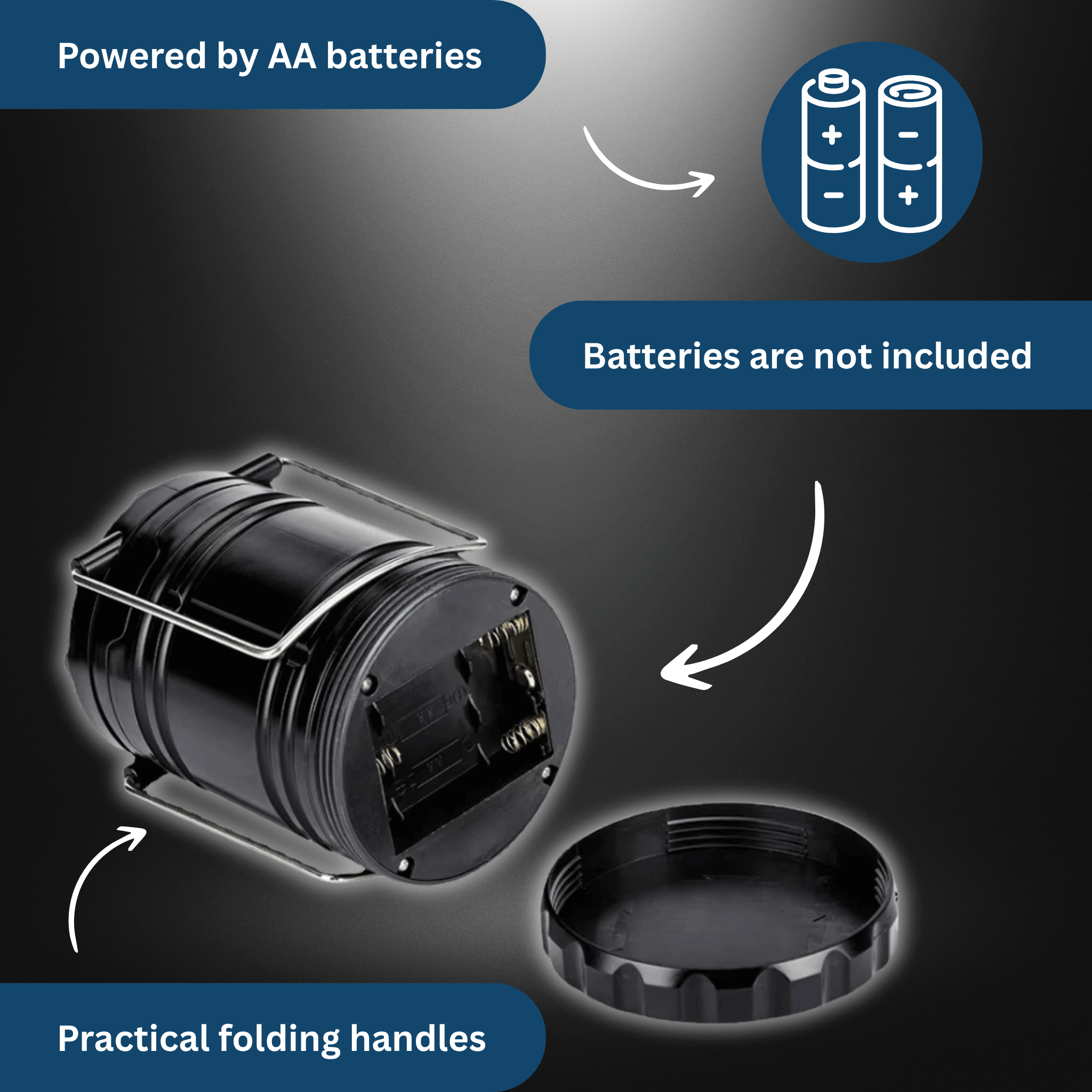 When not in use, the lantern collapses down to a compact size for easy storage.