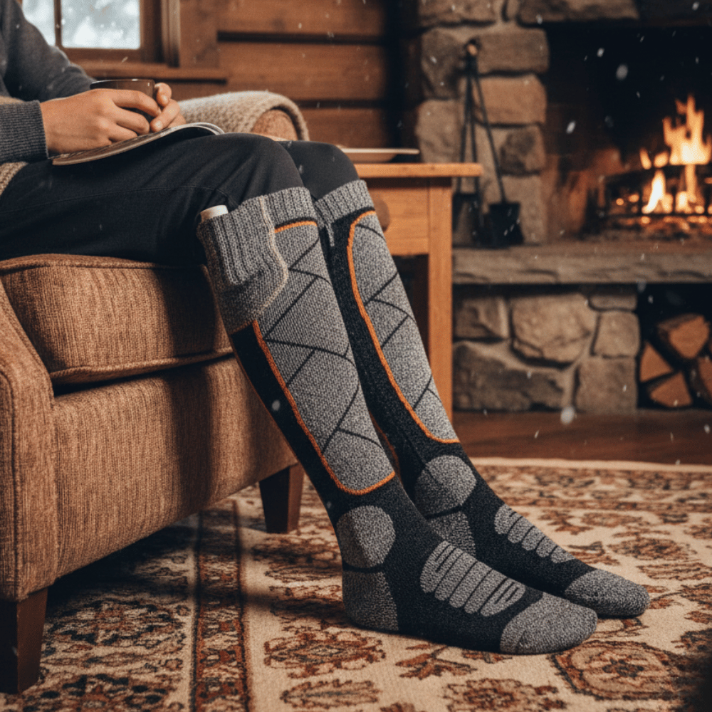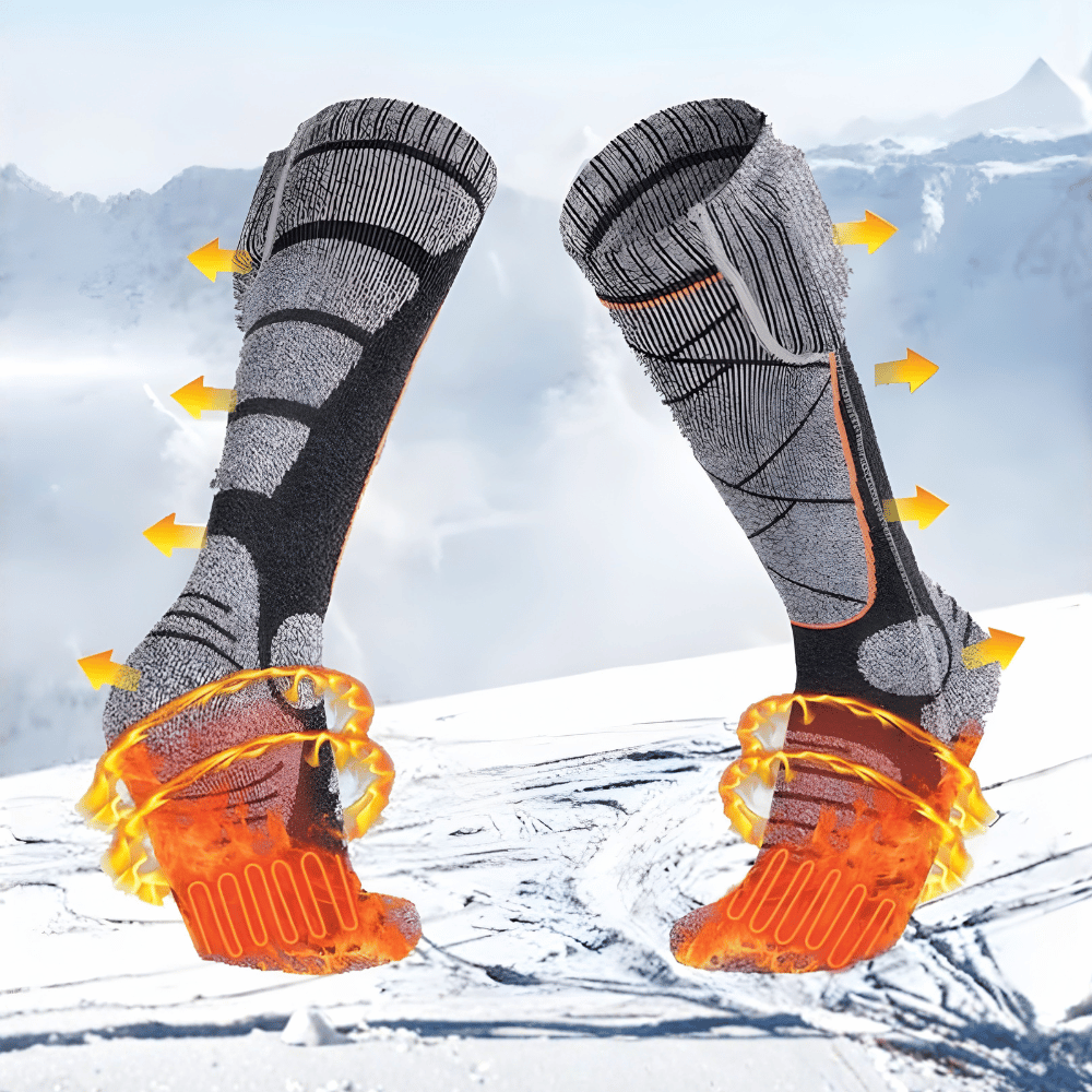 Cold feet don't develop gradually – they appear suddenly. That's precisely what these thermal socks with a power bank are designed for. The integrated carbon fiber heating wires heat up within seconds and transfer the warmth directly to the foot. The toe area, where cold is first felt, is specifically warmed.
