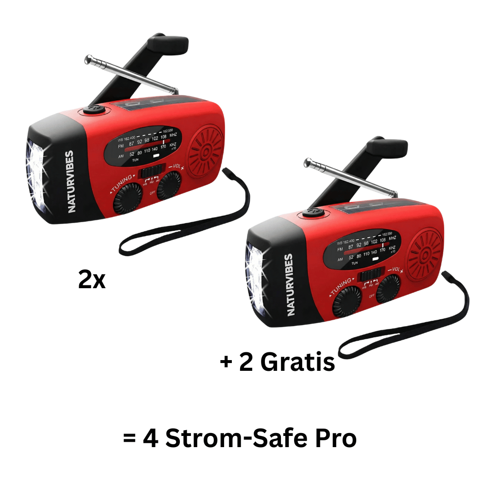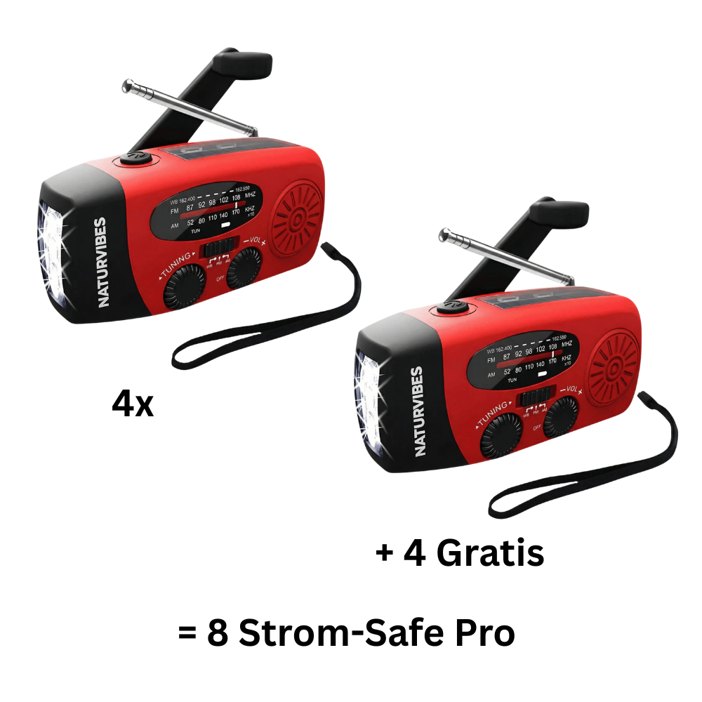 Mit dem NaturVibes Strom-Safe PRO hast du in jeder Situation alles, was wirklich zählt: Strom, Licht und zuverlässigen Radioempfang. Egal ob Notfall, Stromausfall oder Outdoor-Abenteuer – dieses kompakte Kraftpaket sorgt dafür, dass du informiert, erreichbar und sicher bleibst.