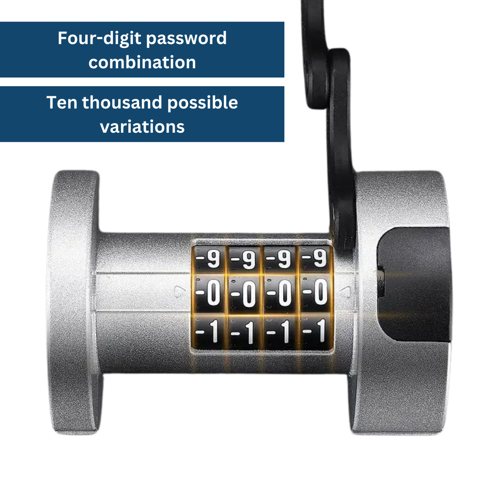 The lock offers quick locking, a four-digit password combination with ten thousand possible combinations, and the option to reset the password using a key. These features combine top security with user-friendliness.