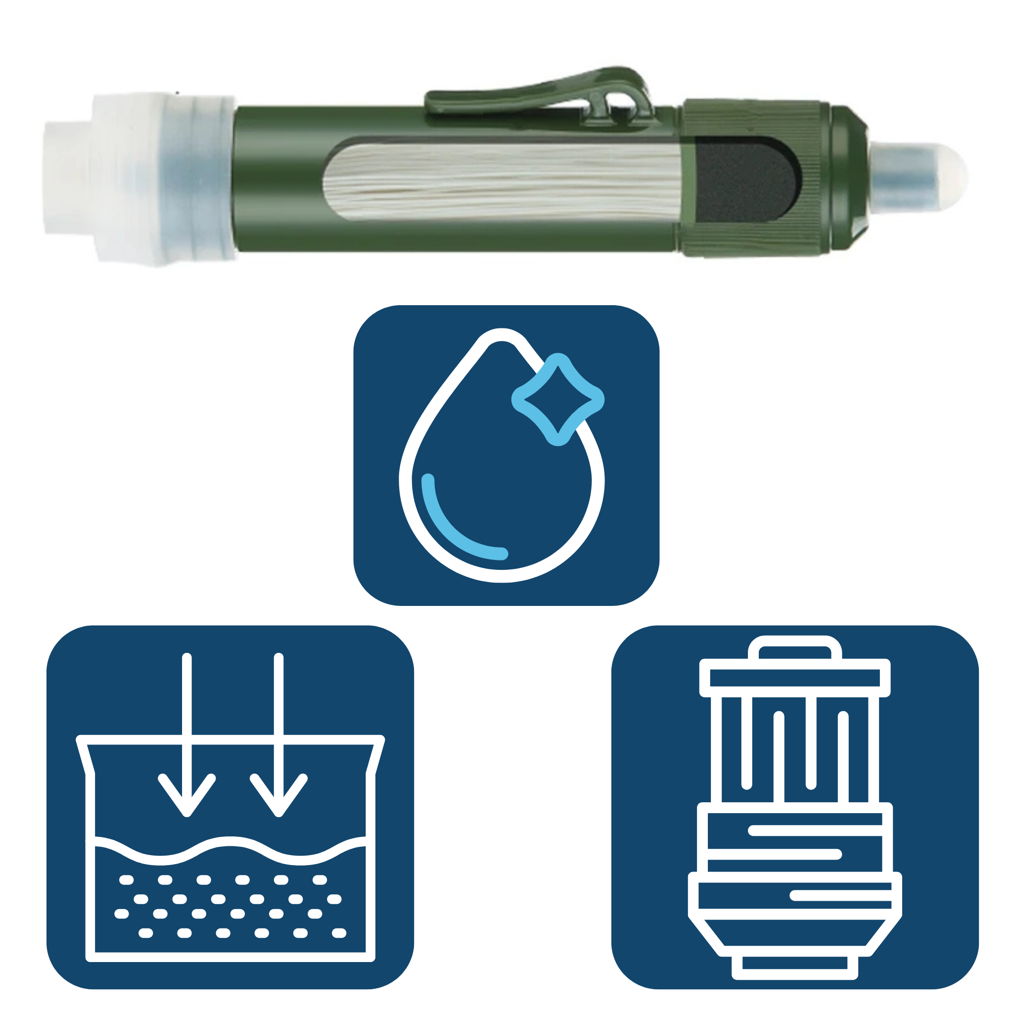 With the compact mini filter straw set, you’ll always have clean and safe drinking water.