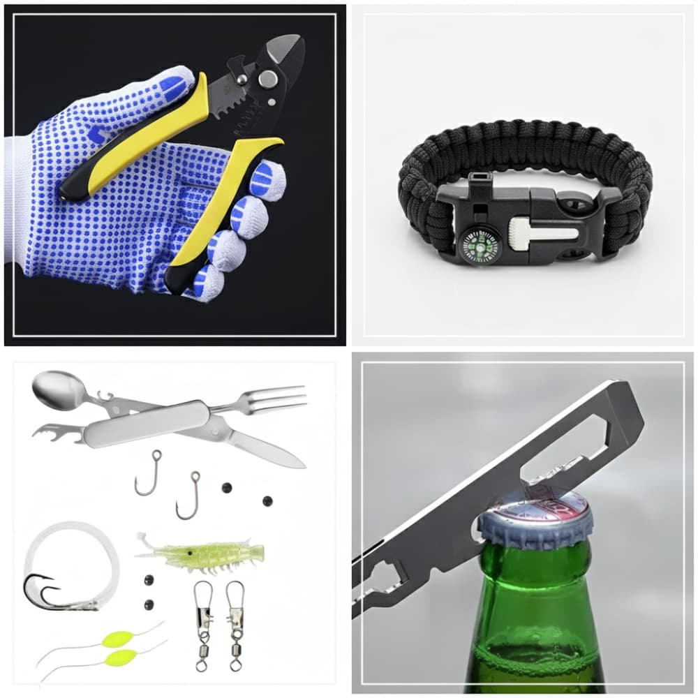 Many of the practical items included-such as the multifunctional cutlery, paracord bracelet, gloves, or fishing gear-are also extremely useful in everyday life, as well as for camping, hiking, and short outdoor trips.