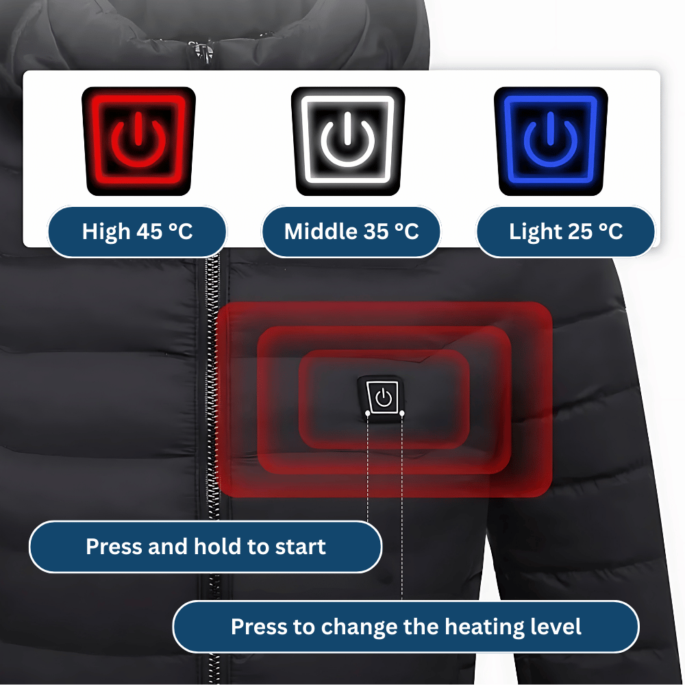 With 9 heating zones, it provides noticeably even warmth within seconds – without thick layers or bulky clothing.